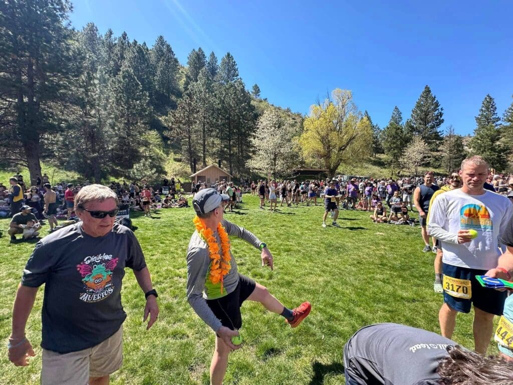 Along the way, spectators cheer on the runners. There were around 700 spectators for the 2019 race, though spectators have dwindled since covid. Neighbors blast the Rocky theme song and cheer from their front yards. Friends and families line the roads with signs, cheering and ringing cowbells. There used to be a “Table of Temptation” located at approximately mile 8, where runners could grab a donut, candy, soda, beer, or take a tequila shot. There’s other aid stations along the way too, serving water and fruit. And there’s the after party. Over the years, runners have come to look forward to the after party – and not just because they are done running. The after party is a full-on celebration complete with food, drinks, live music, dancing, and new friends.