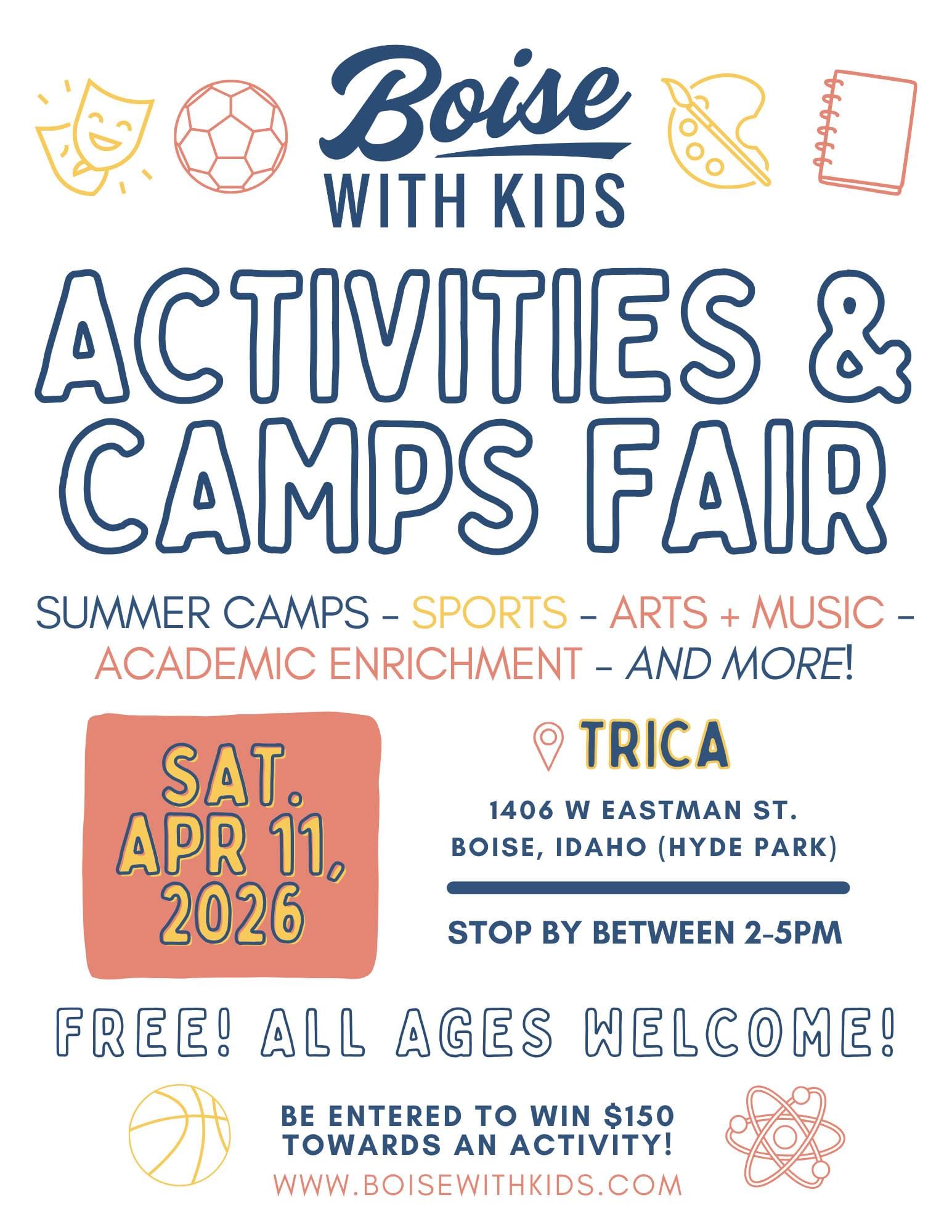 - Boise With Kids is hosting a free Kids Activities & Camps Fair at TRICA in Hyde Park from 2–5pm. It’s a drop-in fair where families can explore local camps, classes, and kids programs all in one place. There’s crafts and giveaways too. It’s free to attend!