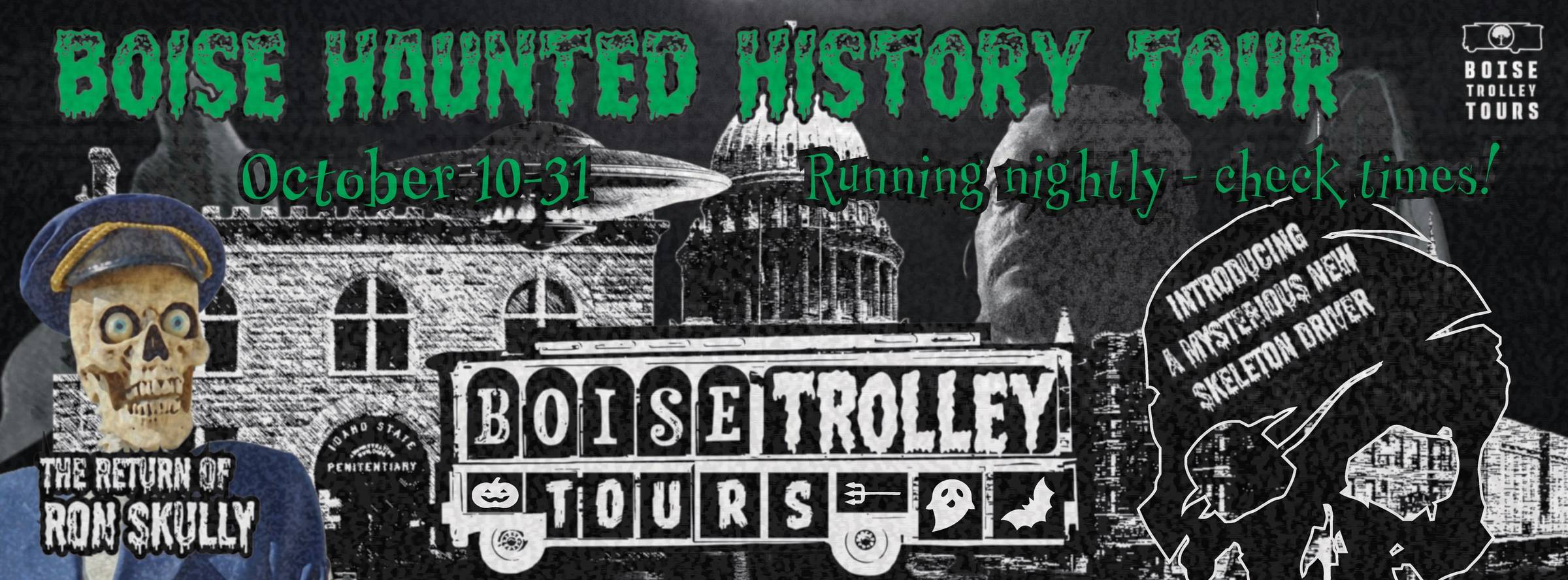 One of Boise’s quirkiest Halloween traditions is rolling back into town. Boise Trolley Tours Haunted Halloween Tour is happening October 10-31! If you’ve never been, let me set the scene for you: you’re on a red vintage trolley cruising around Boise at night, rattling past landmarks with a haunted past. But instead of a guide with a mic, you’ve got Ron Skully, a wisecracking skeleton. His glowing eyes dart around, his jaw moves, and he tells ghost stories with the timing of a stand-up set. The whole thing feels like a mix between a haunted house, a history lesson, and an open mic night. Ron was dreamed up just last year, when the Boise Trolley Tours team decided to level up their annual Halloween rides. They found a high end animatronic skeleton head, dressed him in a bus driver’s uniform, and gave him a voice. With a mix of spooky audio, tongue-in-cheek humor, and plenty of groan-worthy “boo” jokes, the tours sold out fast. This year, Ron’s back with a neck upgrade (his head now swivels) and a friend. Bonita, voiced by local comedian Krystal Moore, is making her debut. Now there will be two trolleys going, each with a spooky host. Between the two, every ride will be a little different. The Haunted Trolley kicks off on Friday, October 10 with two tours a night at 6pm and 8pm. They start and end at the Red Lion Hotel on Main Street, loop past downtown, Boise State, and Hyde Park, and make a stop at the Idaho State Penitentiary and Pioneer Cemetery (of course). Tickets must be booked in advance online or by phone (208-433-0849), and based on last year, they’re going to go fast. More Trolley ToursBoise Trolley Tours isn’t just about Halloween. They run a handful of other rides throughout the year: Historical ToursHop on an open-air trolley for a 2 hour ride through Boise’s past. These tours run daily at 10am and 1pm, Monday through Sunday, and feature more than 100 tidbits about the history of the City of Trees. Comedy ToursTrolley tour meets comedy booze cruise. The Boise Hysterical Tours feature local comedians who roast you through Boise’s colorful past. Each show kicks off at the Red Lion Hotel lobby bar at 7pm, with the trolley rolling out at 7:30pm for 90–120 minutes of laughs. Along the way, you’ll stop at three historic downtown bars for drinks, stories, and plenty of punchlines. Holiday Lights ToursBundle up, grab a hot drink, and climb aboard the Jolly Trolley for a cozy ride through West Boise neighborhoods to see the city’s best holiday displays. Holiday music, twinkling lights, and plenty of Christmas cheer included. Custom ToursThe Boise Trolley Tours crew loves working with the community to create one-of-a-kind experiences. Weddings, private history rides, team building and more. Boise Trolley Tours has been around for years, but it’s in the middle of a glow up. With skeletons at the wheel, comedy (& cocktails) on the road, and a fresh spin on local history, it’s one of the most fun ways to see our city. Whether you’re visiting or just wanna play tourist in your own town, hop on board and see Boise in a whole new way. Get tickets & more info at boisetrolleytours.com​ Thanks for reading! With love from Boise, Marissa ​